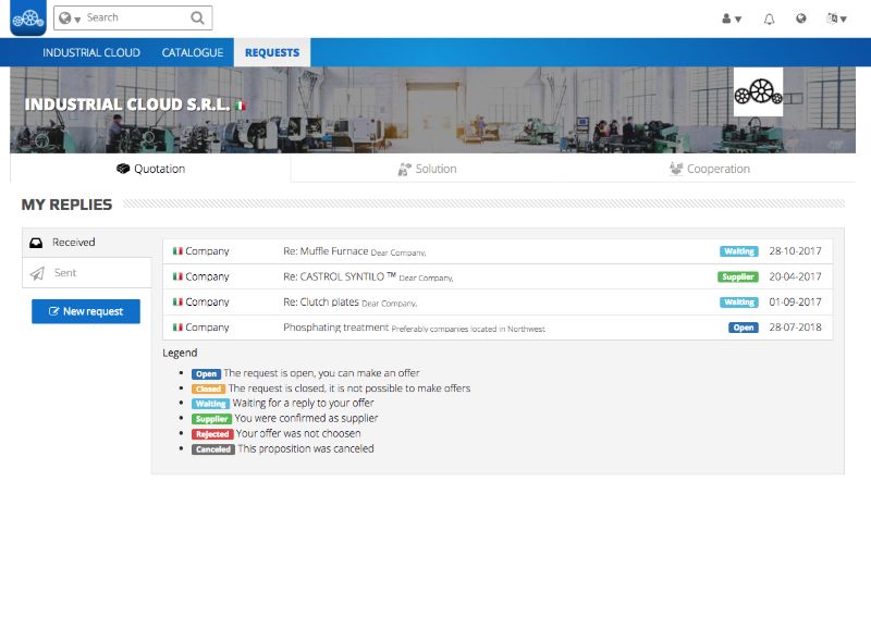 Qui trovi tutte le richieste d'offerta in attesa di essere analizzate. Uno spazio che agevola e riduce i tempi di ricerca, sia per le aziende richiedenti che per quelle offerenti.